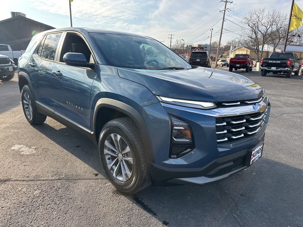 Lakeshore Blue Metallic 2026 Chevrolet Equinox LT Equinox LT, 4D Sport Utility, 1.5L DOHC, CVT, FWD, Lakeshore Blue Metallic, Black Cloth, 4-Wheel Disc Brakes, 5.81 Final Drive Axle Ratio, 6 Speakers, ABS brakes, Air Conditioning, All-Weather Floor Liners, Alloy wheels, AM/FM radio: SiriusXM, Auto High-beam Headlights, Brake assist, Bumpers: body-color, Cargo Mat, Cloth Seat Trim, Compass, Delay-off headlights, Driver 6-Way Manual Seat Adjuster, Driver door bin, Driver vanity mirror, Dual front impact airbags, Dual front side impact airbags, Electronic Stability Control, Emergency communication system: OnStar and Chevrolet connected services capable, Floor Liner Package, Four wheel independent suspension, Front anti-roll bar, Front Bucket Seats, Front Center Armrest, Front Passenger 4-Way Manual Seat Adjuster, Front reading lights, Fully automatic headlights, Heated door mirrors, Heated Driver and Front Passenger Seats, Heated front seats, Heated steering wheel, Illuminated entry, Low tire pressure warning, Navigation System, Occupant sensing airbag, Outside temperature display, Overhead airbag, Overhead console, Panic alarm, Passenger door bin, Passenger vanity mirror, Power door mirrors, Power steering, Power windows, Premium audio system: Chevrolet Infotainment 3, Radio data system, Radio: 11.3 Diagonal Advanced Color LCD Display, Rear anti-roll bar, Rear reading lights, Rear seat center armrest, Rear window defroster, Rear window wiper, Remote keyless entry, Second Row All-Weather Mat, Security system, SiriusXM with 360L Trial Subscription, Speed control, Speed-sensing steering, Split folding rear seat, Spoiler, Steering wheel mounted audio controls, Tachometer, Telescoping steering wheel, Tilt steering wheel, Traction control, Trip computer, Variably intermittent wipers, Wheels: 17 Grazen Metallic Machined-Face Aluminum, Equinox LT, 4D Sport Utility, 1.5L DOHC, CVT, FWD, Lakeshore Blue Metallic, Black Cloth.